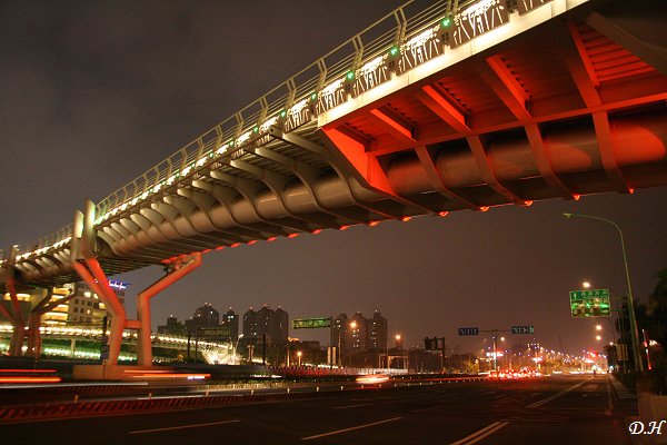 從藍昌路往南騎,要越過後勁溪,這一段上坡路騎得費力。而且這一段路我第一次來,又是天黑,所以不知路程遠近,邊騎邊認路,有點辛苦。直到騎到後昌路才知道所在何處。經過夜晚點燈的翠華陸橋時,停下來拍照。陸橋的燈光會變換顏色,從橋下拍搭配急駛而過的車輛形成的車軌,頗有可觀之處。