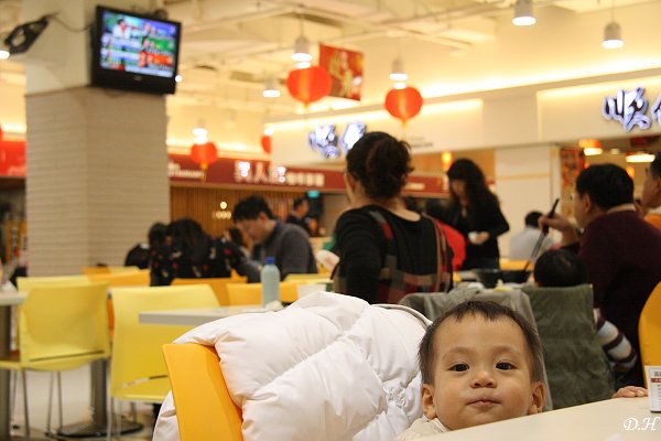 離開高雄大學,天已經快黑了,來到家樂福楠梓店正好六點。這家家樂福外觀內裝看起來頗新穎,不過美食街的人並沒有太多。進駐的店家有五花馬、周氏蝦捲、高雄空廚、壽喜燒、鐵板燒..。因為大寶說要吃飯,所以我們就走進周氏蝦捲店內。吃完後,又在美食街點了一碗安平豆花吃著。牆壁上的電視正在播放這次大選的開票過程,進行到這個時候,看來大勢已定。不過貪吃的二寶正在吵著要吃東西,一副誰當選都跟我無關的表情,反正老爸都會餵我吃豆花。