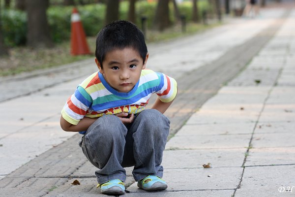 老婆對苦楝花開花落不怎麼在意,帶著二寶先行一步到兒童遊戲場了。我和大寶在大草原繼續嬉遊一會,也隨後來到遊戲場。遊戲場中不外是溜滑梯、盪鞦韆、蹺蹺板;這裏倒還有個水管洞可以鑽,還可以從小丘上頭冒出來。