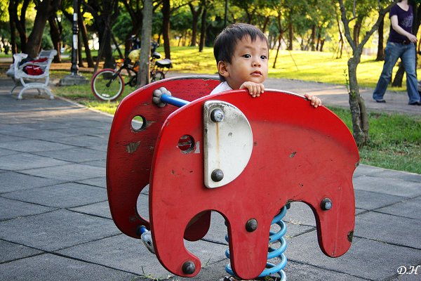 大寶和二寶還不會欣賞如串珠般的穗花棋盤腳,倒是對兒童遊戲場中的「大象搖搖」與盪鞦韆比較有興趣。兩個人喜歡搶同一樣東西,譬如哥哥在玩大象搖搖,阿弟仔也就想玩大象搖搖;哥哥在玩盪鞦韆,二寶也想玩盪鞦韆。以後長大了,不知道會不會同時心儀同一個女孩?