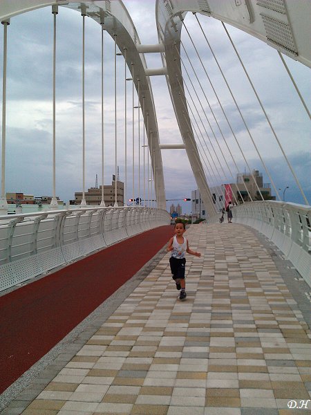 我決定在美術館不停留,轉入美術南三路,右轉美術南二路,直騎到底便是河西路,願景橋已經在望。我們在願景橋下水岸待了一會,這是願景橋完工之後,我們首次來到水岸地帶。不過老婆對於河西路對面那家鄧師傅賣的東西比較有興趣,帶著大寶過去探看了。我陪著二寶走了一會,老婆和大寶也探過回來了。於是我們續騎到中都濕地公園,這是我此行預定的折返點。