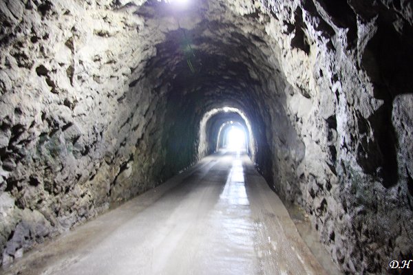 小馬隧道兩端在戰後整修塗上水泥,我初時只在隧道口附近拍照還不覺得特別;後來開車經過隧道中段看見人工開鑿痕跡以及兩旁小水溝與隧道上方不斷滴水,好似新竹清泉往觀霧的桃山隧道。於是出了隧道西口停好車又回頭進隧道去拍照。由於隧道狹窄只限一輛車通行,在拍照時還必須注意是否有車通過。後來果真有車來了,我拍好照之後,只好以跑百米的速度衝出隧道。