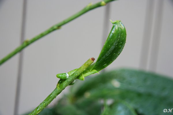至於大舅的蝴蝶蘭早就謝了,不過這回卻在花梗前端長出新芽了,隔了一周,我終於還是把它從花梗上剪下來移植到水草中去。