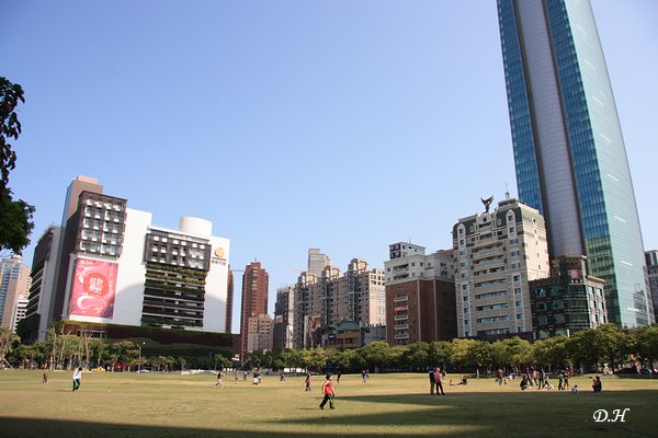 順著綠帶往北走,來到永龍萬應公附近,斜對面還有一間廟,科伯說這處綠帶就是這兩間廟了。至於路左側有一間外型特異的泰式餐館-Bug and Bee,科伯說常見年輕人來此聚餐。續行,左轉公正路,前方大塊綠地就是台中市民廣場,有許多人攜家帶眷在這裡嬉遊放風箏。路一側是兩棟所謂景觀豪宅,就如同高雄凹子底公園南側那幾棟可以直接面對公園。不過我覺得豪宅坐南朝北光線冬天光線不良。之前有看過某間建設公司(就是某天地那間)的老闆在電視很有良心地說在台中市中心精華地段特地保留這一塊空地提供出來做為公園綠地,莫非說的就是這台中市民廣場?