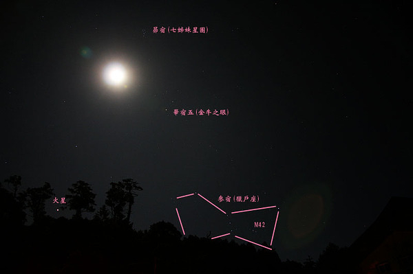 (鞍馬山莊停車場前夜觀星斗-獵戶座與火星)