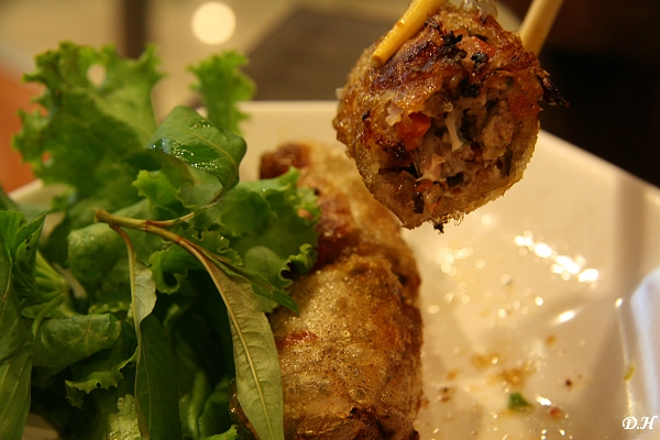 (晚上去忠孝東路附近的巷子裡面,找到一家越南餐館(鼎越豐?)吃飯,圖中是店中的炸春捲)