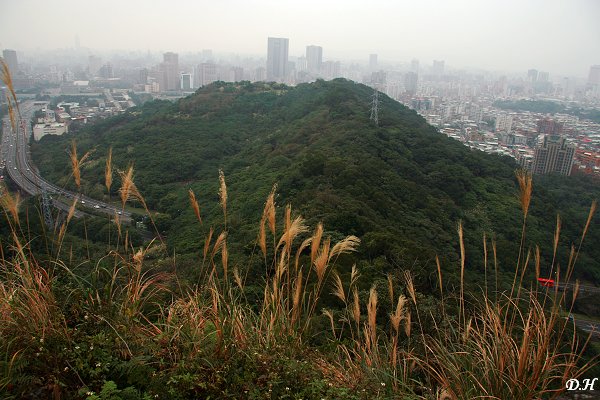 退回第三涼亭,不取往富陽公園的岔路,而是取直行無指標的小土路,沿途..樂聲終漸不聞,從稜線上透過相思樹眺望對面的蟾蜍山,嘗試構圖。