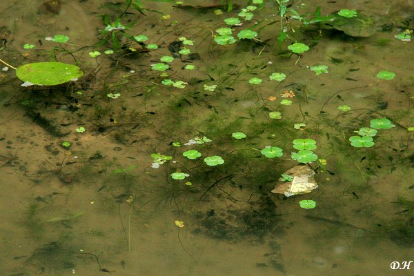來此探訪,最好是在生態導覽人員引領的雨後夏夜前來,聽蟲蛙鳴唱。不過我到溼地的時候已是冬季5時的傍晚,也不差,早沒了強烈的陽光,一派幽靜,水邊已有蛙兒嘓嘓間歇叫著,水邊野薑花旁是幾許叫不出名字的水聲植物,漂浮水面上的四葉的浮萍間(?姑亂猜之也),台北樹蛙的蝌蚪們在其中扭著尾巴來回游來游去。