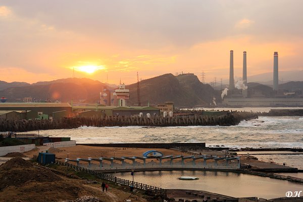 (和平島公園的夕照-看向白米甕砲台與協和火力電廠)
