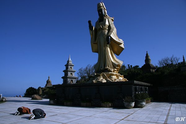 不過,我還是先換證進入,從右方的入山口來到多羅觀音像,觀音面海法像莊嚴,象徵慈航普渡聞聲救苦,旁邊圍繞有53座舍利塔,成舍利塔林,每一塔內有佛像及舍利、經典、袈裟(象徵佛法僧三寶)。梵音「多羅」為離塵垢之意。基座三面環列「圓覺經」中向佛陀提問的十二位菩薩聖像與偈語,並有觀音心咒轉經輪。