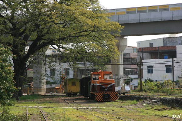 (新舊時代交錯:高捷與五分車。高捷通過橋頭糖廠的爭議正如同新莊線通過樂生療養院一樣)