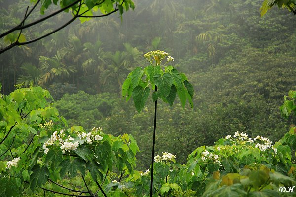不過才離開北國不久的我卻已經忘記了曾經在此生活了十年的北國春天的濕冷,加上週末傍晚的桐花公園也竟然冷清無人,也因為這冷清無人,所以山谷間騰昇起的山嵐竟然如此清靈飄逸,園中的油桐樹葉也能如此翠綠可愛,此時漫步在無人的桐花公園感受到空氣中的濕意,彷彿也讓旅人走進了潑墨山水般的詩情畫意。