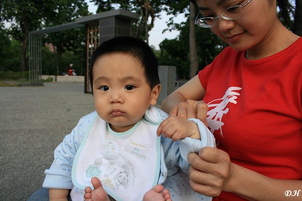 (半屏山步道很難手推車,嬰兒車被爸爸提起來off road了,所以小孩只好由媽媽手抱著)