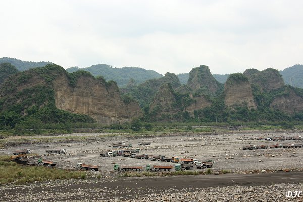 難得看到這麼多砂石車像螞蟻一樣在河床上爬來爬去真是令人嘆為觀止。今天看到報紙才知道正在進行荖濃溪河床疏濬工程,希望可以趕在夏天泛舟季節到來前完工。