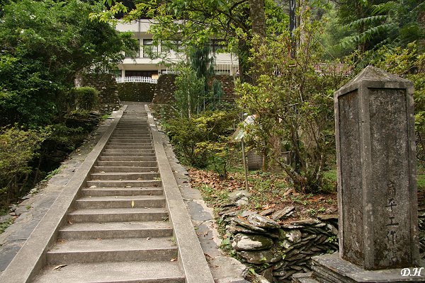 休息夠了,繼續上路,我又帶著家人從土地公廟左下方走了一圈樟腦寮、筍寮,途中看到一種奇怪的花,像是乒乓球狀(名字好像是夜合花)。然後走到林務會館時,天空開始飄小雨,爸媽抱著孫子走得飛快,倒是老婆注意到林業教育推廣中心門怎麼開了,於是我們入內參觀,裡面佈置大概跟三年沒有什麼兩樣,倒是逛不到一會兒,就被工作人員呼喚說要關門了。什麼?才下午三點就要關門了?中午休息,下午三點就關門,這..。