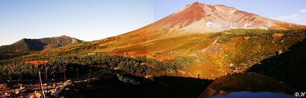 其實也該滿足了,斜射西照的夕陽金光,映著旭岳山巔的紅土陡坡與大小湖泊,地上岸邊已經先紅的植物因此更顯得分外耀眼。此行雖未能將紅葉看得盡興,就當作下回再來舊地慢慢遊的藉口。