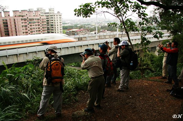 下午離開觀日亭下山去,過了大牛山之後,還要下一處階梯,此處正好鄰近高鐵隧道,可說是近拍高鐵的好地方,應該可以列為「拍高鐵百選地點」之一。大家在這裡跑來跑去拍高鐵,玩得不亦樂乎。