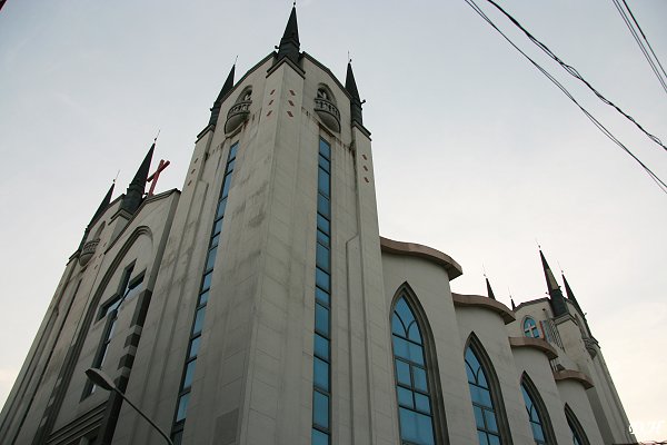 離開曹公國小,循著鳳明街東行,經過正有廟會活動進行的城隍廟(前庭有松樹公廟)與破舊不堪的鳳儀書院(圍住無法進入)。城隍廟中的名匾「你來了」(台南府城隍廟的橫匾是「爾來了」),不過只待了一會,我又走了。下一站是「鳳山基督教長老教會」,如哥德式尖塔造型,媲美真理大學的禮拜堂,同樣的教堂的大門也是尖拱造型的,像是火炬,也像是心形,如合掌的手(虛心祈禱的手),想必也是拍婚紗的勝地。