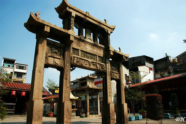 離開藥王廟之後,驅車去尋信義街上的兌悅門,不過信義街實在是一條非常小的小巷子,而且因為兌悅門位於五條港中最北的新港墘港,離三郊的總部水仙宮已經有一段距離,與其他古蹟相去較遠。不過後來還是被我找著了,兌悅門的位置在金華路以西,在信義街與文賢路路口。兌為金,八卦中的兌卦是指西方。