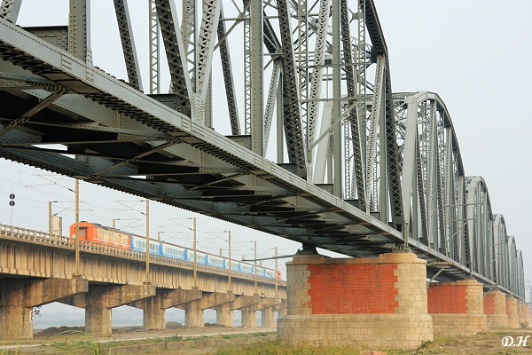 對這座橋的構圖取景亦是攝影者的一大挑戰。當然造型優美的舊鐵橋隨便怎麼拍都好看,如何別出心裁要看個人,至少那花崗岩橋墩與多道弧形鐵拱必須入鏡。我特地等到了列車由新橋通過時來拍,以求對照。