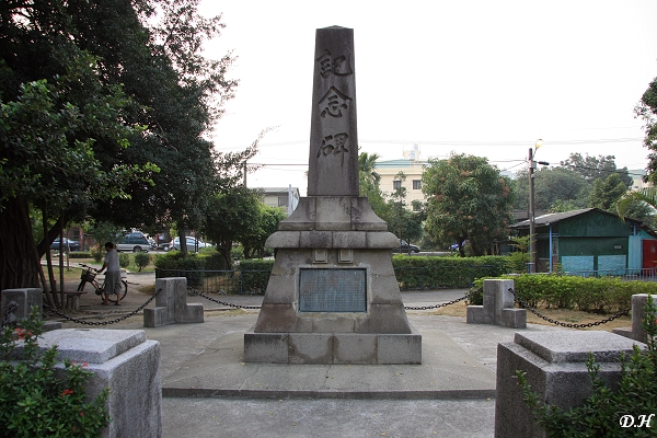 探訪完曹公圳圳頭後,看看時間不早,本來應該趕快在天黑前前往鳳梨山,預估應該會花一點時間在野外尋找基石,但經過九曲堂時,還是忍不住彎進九曲堂車站前的巷子,在復興街上看到飯田豐二記念碑的指標。這座記念碑是飯田豐二去世後由同事小山三郎等人集資興建,將其生前遺墨埋於記念碑下。原本在台灣光復後要被拆除,但最後在鐵路局老員工堅持下才得以保存,至今仍維持基座護欄等結構完整,現列為二級古蹟。碑文略述飯田一生為人與高屏舊鐵橋興建時的艱苦,碑文末云:「..此地面淡水谿長橋如虹,近在目睫之間,蓋君心力之所傾注也,有此靈乎足以安矣!..」最能表達好友念之記之的誠摯情誼。