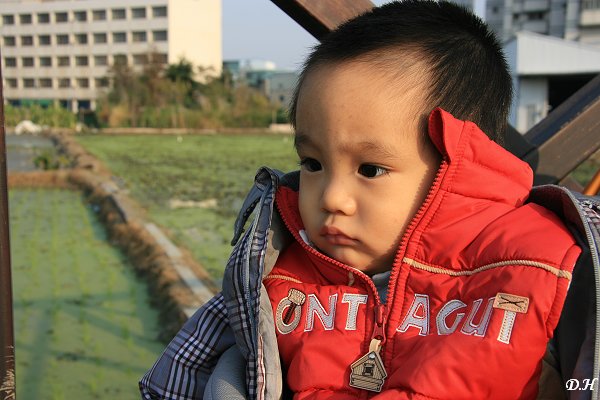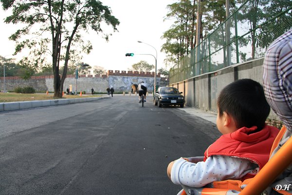 本來原先規劃還想往南門去,不過時候已經不早就不去了,就在城內綠草地中間的小徑上讓剛學會走路的小兒快樂地亂走,不過他看到我在拍他,只會一個勁地往我撲過來。現在走路還不太會平衡,所以手都高舉著,他可能以此當作平衡吧,不過還是偶而會腳軟跌倒。此時此景正好有一首兒歌可以來對應:「城門城門雞蛋糕,三十六把刀,騎白馬,帶把刀,走進城門滑一跤」。不過我們在唱這首歌時好像都沒去管「城門」到底跟「雞蛋糕」有什麼關係?不過如果你真的問我:「城門城門幾丈高?」我可以告訴你鳳儀門有一丈三尺高。