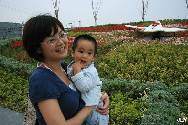 趁著天還沒黑之前先去逛附近的幸福公園,幸福公園中也有一座像陽明山光復樓前的花鐘。花鐘以及附近的花圃都還在佈置,因此附近的地上放了許多還沒佈置的小盆栽。從花鐘前看這不過是一個尋常的花鐘,不過由於公園尚未完善,走過花鐘之後卻還是停車場,這時如果回頭看有傾斜高度的花鐘,這模樣這型式有點那個..山明水秀了,不知道當初規劃的人怎麼會把這花鐘與公園本體中間用一個停車場區隔開來?但這是公園的停車場還是百貨公司的停車場?不過現在都是停滿要去百貨公司的車就是了。走過停車場,是一處圓形階梯狀的表演廣場;再過去然後是一處開放式廁所,因此高鐵列車上的乘客可以看得到男生廁所,不過還好是背對著,真是好幸福的公園。