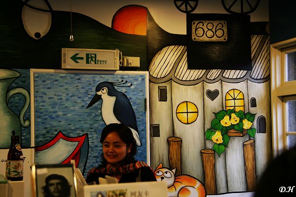 位於淡水河人來人往的河岸邊的有河book書坊就不用介紹了,有興趣請直接連到有河book的網站。至於生意的事交給蘇菲就行了,我自顧自地隨意拍拍,踏上往二樓的樓梯兩旁的牆壁、可以輕鬆眺望淡水觀海的陽台,以及陽台上兩隻慵懶不太想理我的貓咪。