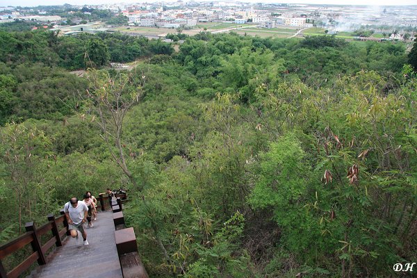 冷氣吹夠了,離開漢堡店循著台一線南下,過了路竹,與高雄科學園區,伺機右轉186縣道回到台17線往彌陀,但是到了漯底山已經五點半了,本來想讓小兒在園區裡面到處亂跑的,不過時間已然不允許,於是直接來到了瞭望台。跟去年年初最後一次來漯底山不同的是,園區內的木棧道都已經鋪設完成,而且看起來還頗新穎。另外就是搭設了許多高架的木造觀景台,也在瞭望台那邊的水泥看台上鋪上木板。正在整建的包括入口附近的廁所與營舍改建的解說區,以及入口前的人行磚道。老實說有許多人 工設施我覺得並不必要,只要能有專人維護園區的整潔與環境就足夠了,其他的保持自然就是好。