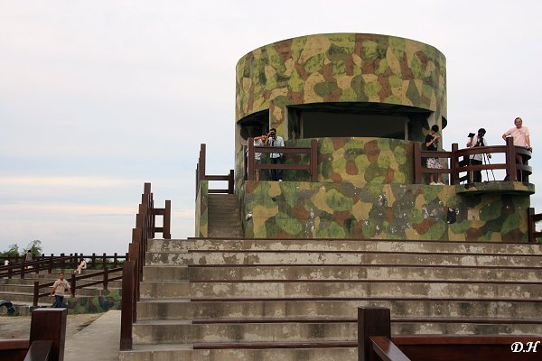 漯底山的瞭望台雖然海拔不超過100公尺,不過以其下方的綠色田野與非常鄰近台灣海峽的地理位置,以前或許是防範水鬼上岸制高點,現在是拍攝拍夕陽的好所在,像這個時候瞭望台上就有好幾隻攝影腳架,我聽到有人在指導新手「像這種情況如何設定曝光如何搖黑卡」。