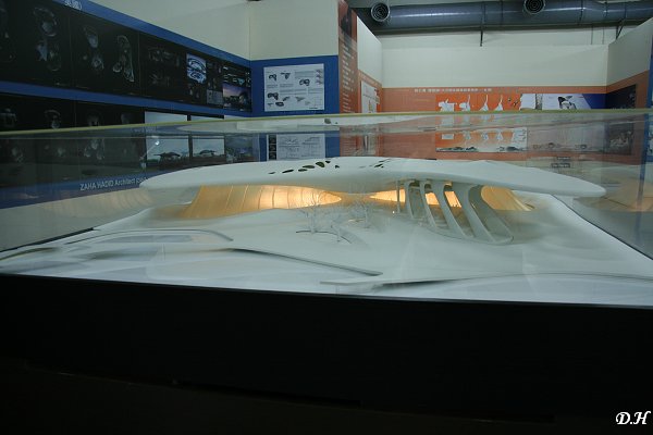 不過同樣都是來自榕樹與穿透空間的創意的話,第二名的英國札哈‧哈蒂建築師事務所的設計理念「建築本身整體的造型像是由韻律化的地景自然長出,在頂端結合,創造出一個有頂棚遮蓋的公共廣場。」(設計理念可參考這裡)所表現榕樹群間的空間結構似乎更博得我們這群親友團的一致喜愛,而且在場女士們似乎對於「札哈‧哈蒂」這位女性更有興趣了,據了解她似乎原是中東人,成名之後,時常將作品販賣所得捐贈故鄉。