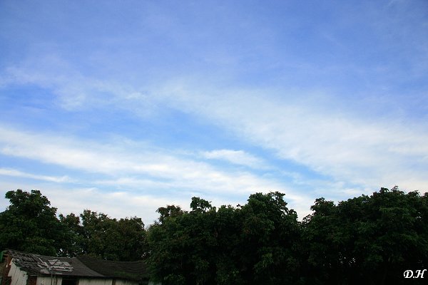 後來又覺得龍眼樹上方的天空,雖然有雲層,不過不礙天空的藍,因為是接近太陽下山時刻的角度。因為藍,一時興起又幫外婆家龍眼樹上方的藍天拍了張廣景照。小舅又跑來秀說他的傻瓜相機也可以拍出藍天。