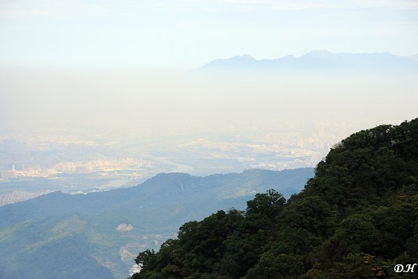(白雞山頂的展望-大屯山浮在霾害之上)