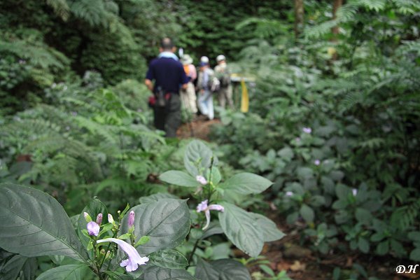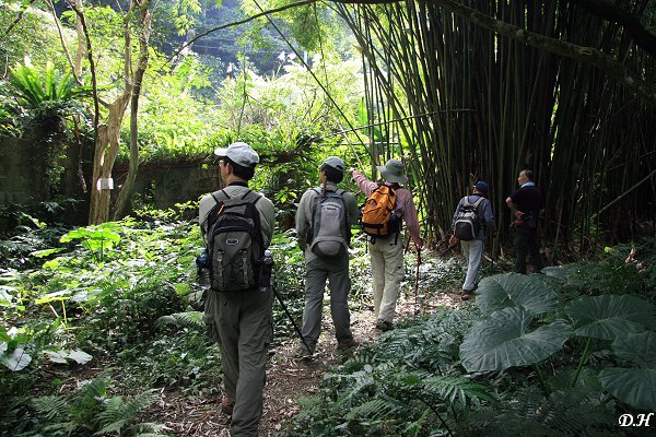 這條往白雞山的步道事實上是條難得的路線,石階不會鋪設的太過,偶有山澗流水,山徑兩旁原始卻不顯雜亂,沿途竹林處處,有多處可歇腳的木椅,Tony兄看到木椅一定要停下來喘息,我也趁機休息陪他聊他新買的單眼相機如何運用自如,如此我們兩個當然只得殿後,Tony兄並笑怪老恩兄為何昨晚熬夜不能前來,壓力因此轉到我倆身上。
