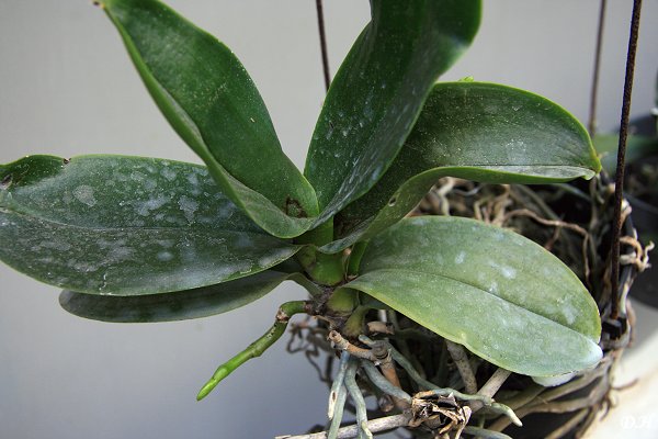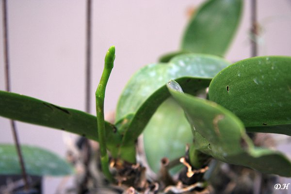 去年12月底遭遇八八風災得到軟腐病的蝴蝶蘭雖然還是抽出花梗,但是今年四月初所有蝴蝶蘭的花梗都是發黑開不出花來,算是全軍覆沒。軟腐病這一年來未見改善,前幾個月終於買了藥來處理,不過看不出成效,該枯該爛還是照他們的路在走,有一兩株蝴蝶蘭已經枯爛到剩一葉,算是苟延殘喘。