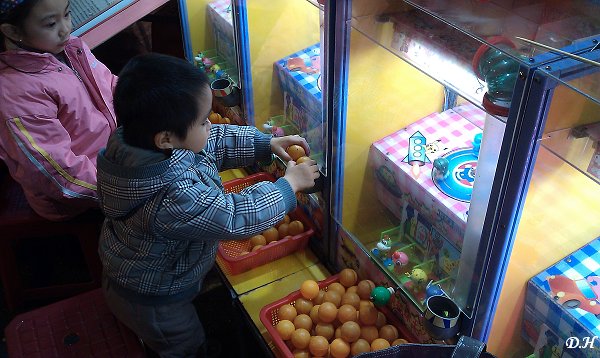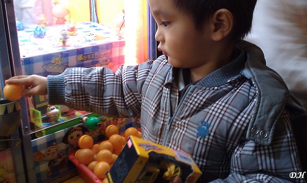 老闆娘對小兒真不錯,她大概是覺得這個做老爸的,明知小兒不太會玩快樂的接球王還願意帶他回來玩,所以不管分數多少,就給我們比較適合的玩具啦。如果真的把我心中這樣的想法告訴老闆娘,她一定會這樣回我,其實是看在你可愛的兒子的面子上啦。