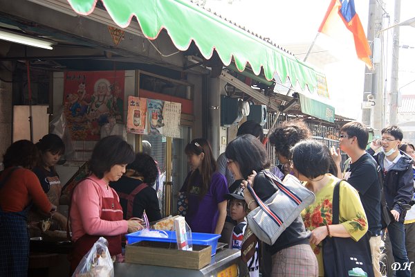 走出巷口去看老婆是否還在排隊?果然她還在隊伍之中,前頭還約有10個人吧。不過她說剛才店家有出來統計人數,看看剩下的燒餅皮與料會不會不夠。老婆說,店家有算到她,所以應該買得到。也真難為她,懷抱一個七公斤的嬰兒在排隊,只能說,衣帶漸緊終不悔,為美食排隊也甘願。