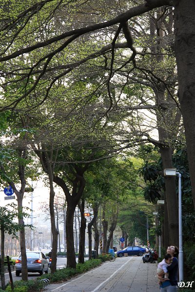 (高雄都會公園德民路人行道的小葉欖仁新綠)