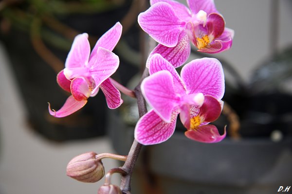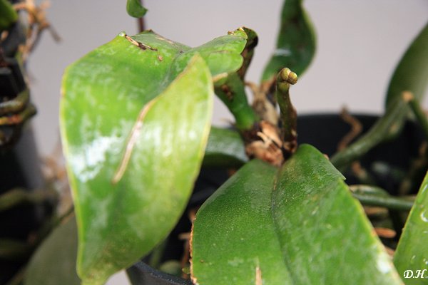 今年的春節看到蝴蝶蘭在去年年底所抽出的花梗都還能順利成長,不過由於有了去年春天的經驗,所以沒有對四月的花況有太多的期待。不過到了三月底回台南,總算兩株蝴蝶蘭阿媽的花梗可以正常抽出花苞,雖然花苞數少了許多。而白花紅心的蝴蝶蘭還沒從軟腐病中痊癒,但慶幸在春天也能抽出新綠葉。至於迷你蝴蝶蘭則是不受影響,仍能開出四五朵以上的花,算是難能可貴,總算讓冬烘居的花圃的春天有了繽紛的顏色。