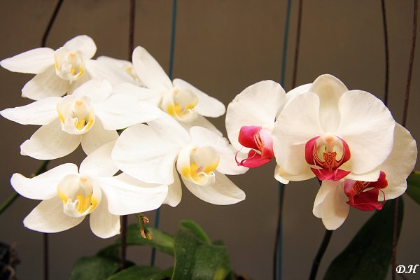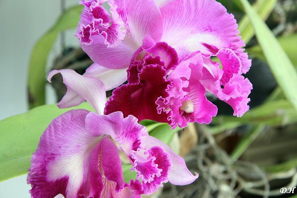 - 1999.02.13 科伯的Amabilis花梗竟然枯萎,葉子摸起來感覺含水很多,疑似蝴蝶蘭常見之軟腐病,所以只能把花梗截掉.另外這次回來又有驚奇,栽培近六年的一株卡多利雅竟然吐出花苞,這株花是我最早種蘭花時從朋友那把他一株久未澆水快乾掉的花拿回來種,但是植株一直未能茁壯,去年底將此株移出至玉蘭花株下,想必因為陽光較充足,所以終於要開花了.這件事的啟示是:要蘭花開花或根莖茁壯一定要給它充足的陽光.還有另一件值得欣慰的是年初所作的換盆新株也長出新根來了.冬天換盆我仍能成功,證明我的技術還是不錯的,其實換盆分株也有幾個要點,將腐敗的部分清除乾淨,淺盆深植,固定牢靠,忍耐幾天不澆水讓新株乾點逼使他長新根,必要時使用花寶一號或其他促進新根長出之植物荷爾蒙如愛根生.