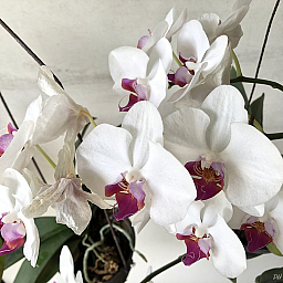 - 1999.03.27 蝴蝶蘭開花,而且花梗再分成四分枝,總共的花苞應該有二十多朵,這是這株蝴蝶蘭第一次花梗還會分岔. 但這株蝴蝶蘭去年並未開花,而是隔了一年才又開花,所以心得是:蘭花也要休養生息,花若快凋謝,便應先將花梗剪下作插花等,以免繼續消耗養分. 另外要時常檢查假球莖的鞘,將之撥下檢查看是否以附著蟲害.