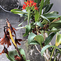 - 2001.02.10 阿媽有多支花梗。過年前將枯萎之植株清除整理。