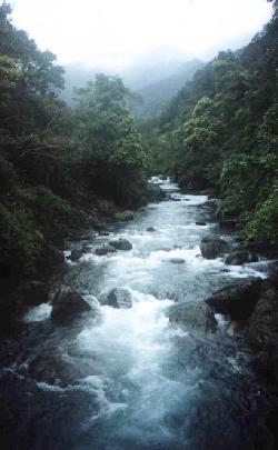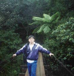 沿著溪而上,不時都有看到人在溪畔釣魚(這點一直是我好奇的。)後來的公路已經舖了柏油,不過應該是最近才舖的。到了公路十三公里處(從孝義起算),溪流已經非常和緩(因為在這裡轉了幾個彎,甚至有的地方形成了一些沙洲),可以讓人很容易走近到溪畔。而林務局也在這裡設立了植物的培育園地,不過沒有開放遊客參觀,大體上是柳杉、孝楠、香楓一類的。從這裡再過去的路,就已經是泥濘不堪了,所以我的也在此打住。不過路旁有一吊橋至對岸,吊橋前還有一小牌示:期望烏來至宜蘭早日開通﹔日期是2001.2.11。咦,這不就是今天嗎?