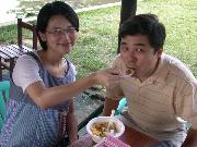 到桃園觀音賞蓮,也是跟一大堆人去湊繞鬧的活動的一種;不過如果在這種朋友聚會性質的活動中還故做清高的話,大概會被群起而攻之,丟到蓮花池裡放生。說實在的,蘭藝社的這群老友確是很久沒有聚會,連暉哥、晴玉的肚子都已經七個月大了(?)。