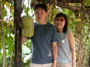 在林家古厝農場中,另外值得一看的是菜瓜走廊與池中的小ㄚㄚ。菜瓜走廊中有一顆從棚頂垂下來大菜瓜,地上還有乾掉的菜瓜絲。於是吃過菜瓜與用過菜瓜布,但卻不知道菜瓜原來是這樣生長的的眾人不禁同聲讚嘆:真是好大的菜瓜啊。相較之下,池中的小ㄚㄚ就只贏得了喜歡鳥的導遊小姐的關愛。