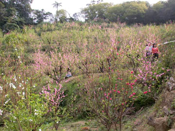 杏花山坡與待老坑山頂之綠意盎然的櫻樹 |