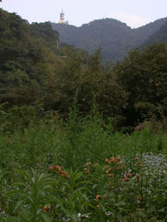 由下方停車場附近往下的步道,走約420公尺可下至溪底壺穴。其實這裡的步道也是四通八達,頗有修繕。不過沒有人推薦,一般人大概只知道來這裡邀月喝茶。步道沿途野花開,群蝶亂舞,少人走的溪谷生態反而豐富。至於對面山頂的二格中繼站,在這裡看起來似乎不很遠。