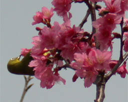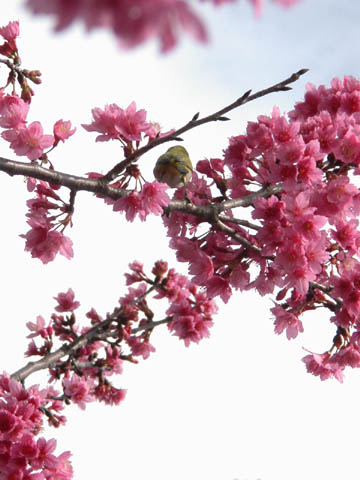 攝影者的鏡頭是貪婪的,今日的望遠鏡頭與腳架準備周全,也能全心全意構圖。正午時分光線充足,這裡的櫻花花朵多且整齊,確實很上鏡頭;連蜂與鳥也一起來湊熱鬧。對一個攝影者而言,天時地利人和具備,實在是心滿意足。