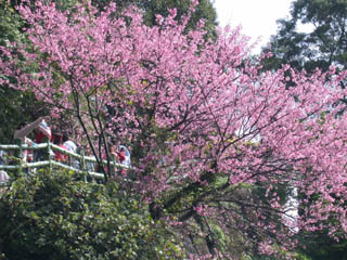 不過說真的,相較前幾年,櫻花開的不夠整齊,杜鵑也似乎不夠多。或許還是霧中看花的感覺最美,今日大太陽下一切顯得過於真實。春節到屏東海生館時看到展出的攝影作品其中有一幅取景的角度、景物、氣氛竟然與我前年花季所拍的相片感覺類似,不知道這算不算是審美眼光是英雄所見略同。