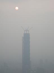 南港山的三角點是在過九五峰後不遠的山頭上,滿是無線電台天線之中。回程下山時,遠望溶入夕陽薄霧中的 101台北金融大樓,雖然現在是二十一世紀初,但卻 讓我有種世紀末的荒涼,萬物滅絕,獨留殘陽空照高樓的孤寂。